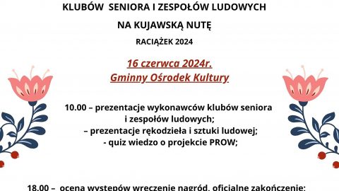 XXXI Wojewódzki przegląd dorobku klubów seniora i zespołów ludowych na kujawską nutę Raciążek 2024 – 16 czerwca 2024, godz. 16.00
