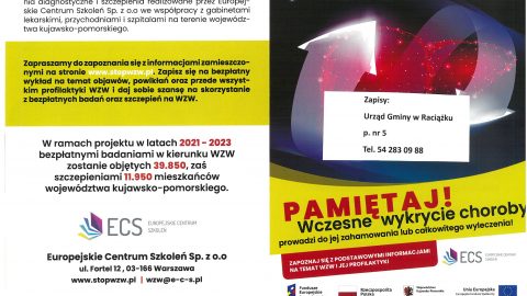 Gmina Raciążek zaprasza na badania w kierunku WZW B i C – wirusowe zapalenie wątroby w dniu 27 czerwca 2023r. o godz. 10.00 – 14.00 w kawiarni GOK w Raciążku. Projekt jest skierowany do osób w wieku 20-64 lat. Serdecznie…
