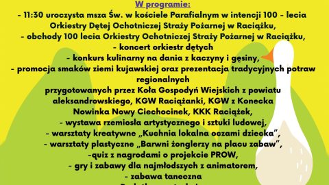Festyn Smaki wsi kujawskiej 26.06.2022r. godz. 13.00.Na boisku gminnym obchody 100-lecia Orkiestry Dętej OSP w Raciążku